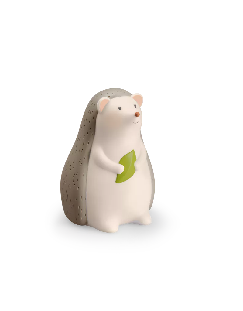 Lampe veilleuse hérisson en silicone sans BPA avec variateur (3 intensités). Diffuse une lumière rassurante dans la chambre de bébé une fois la nuit tombée et décore joliment la chambre durant la journée ! Module LED amovible. Câble USB-C fourni.