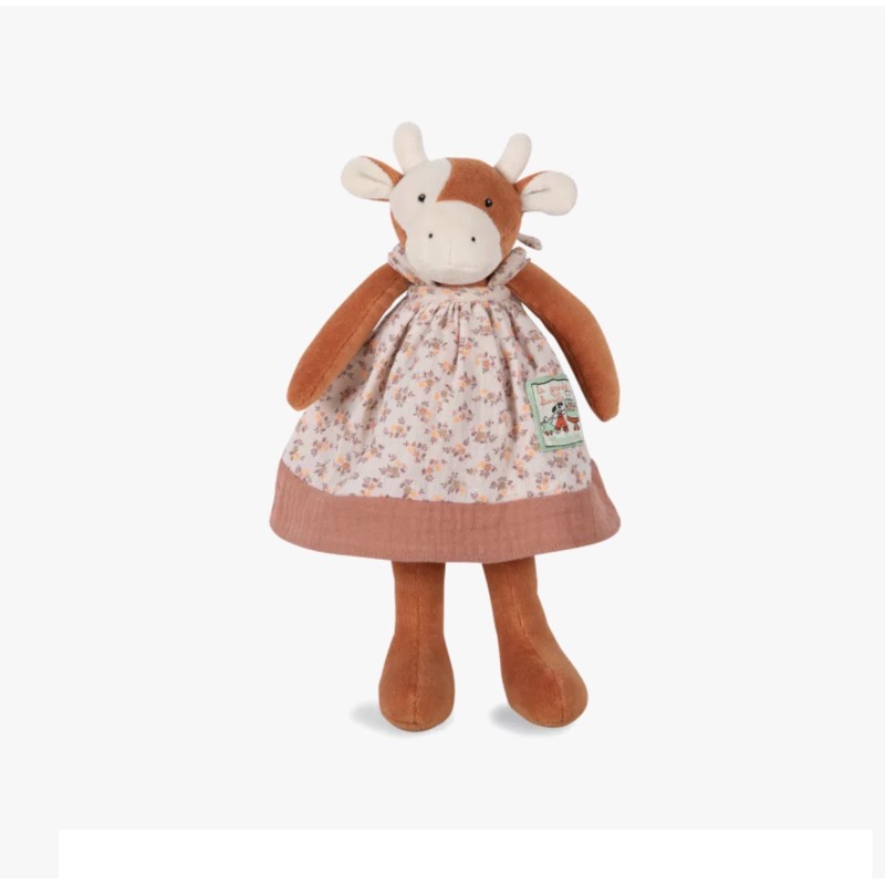 Poupée en velours au doux visage brodé, facile à saisir par les petites mains. Avec ses petites cornes sur la tête et sa jolie robe à fleur, Charlotte la vache est l’amie idéale pour partager de tendres moments de complicité avec bébé.