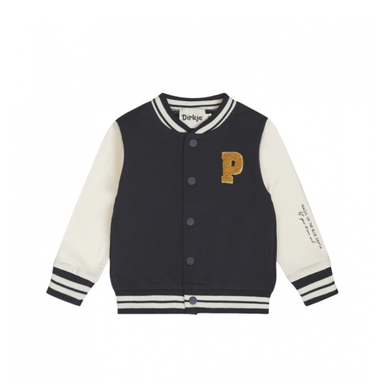 Cardigan jersey.Impression dans le dos .Fermé par pressions.Bord côte bas de manche et bas du blouson