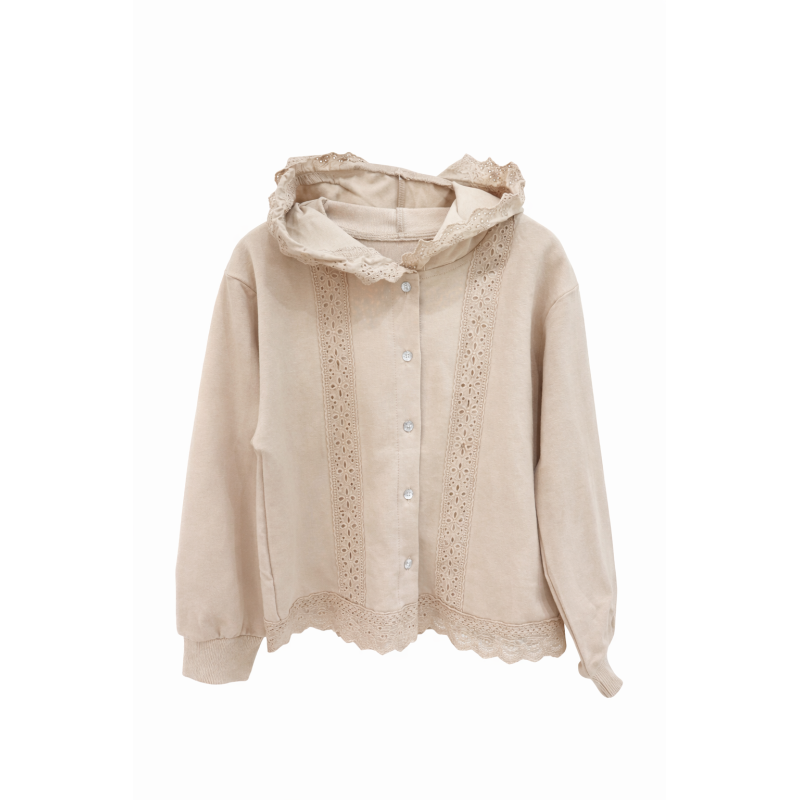 Sweat beige à capuche en dentelle
