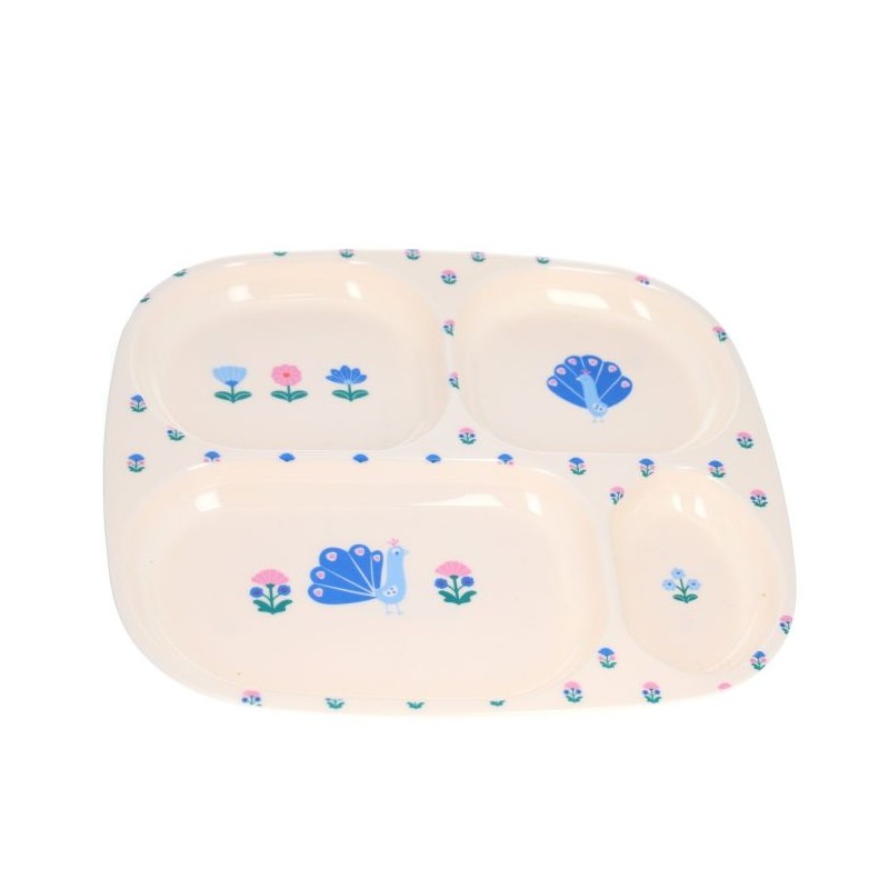 Fabriquée en mélamine, elle est parfaite pour le quotidien : légère, facile à nettoyer, très résistante aux chocs et adaptée aux petites mains. Ses paons et fleurs bleues et roses, emblématiques de la collection Joli paon, apportent une atmosphère poétique et raffinée à la vaisselle enfant.