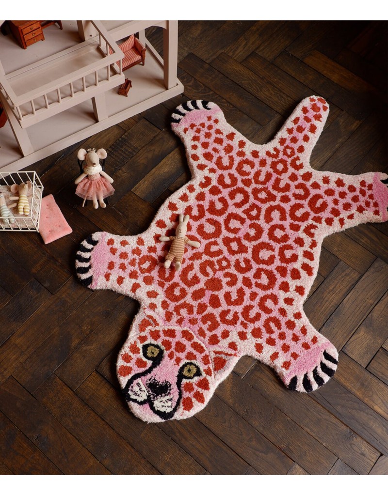 Le tapis Pinky Leopard Small fait partie de notre propre collection Tapis Amis ; une gamme décalée d’adorables créatures du règne animal qui vous donneront le sourire. Ce tapis est fabriqué à la main, en Inde. Il est composé à 100 % de laine et doublé en coton.