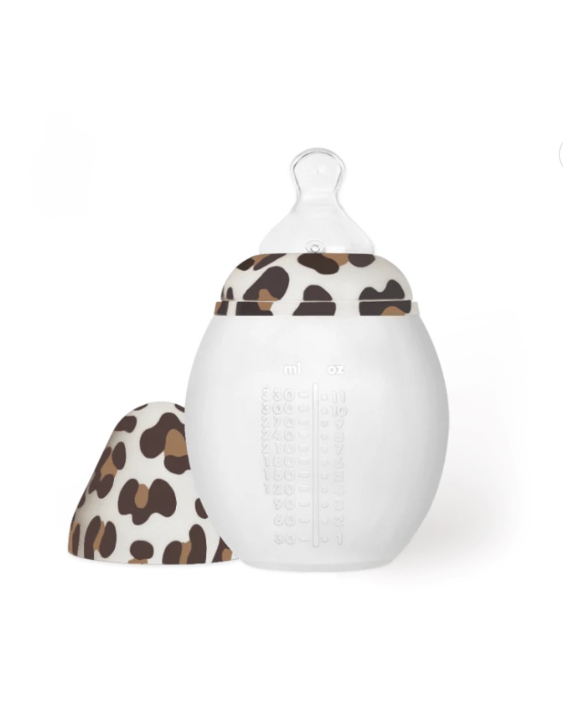 Biberon en silicone médical conçu pour minimiser l’exposition des bébés aux dangers des perturbateurs endocriniens.