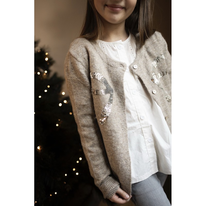 Gilet tout doux 🥰Noeud sur le devant en sequins.Du 4 au 14 ans.