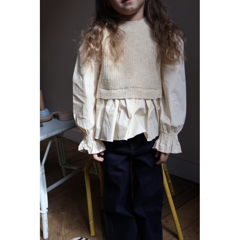 Pull chemise effet superposition. Du 4 au 14 ans.